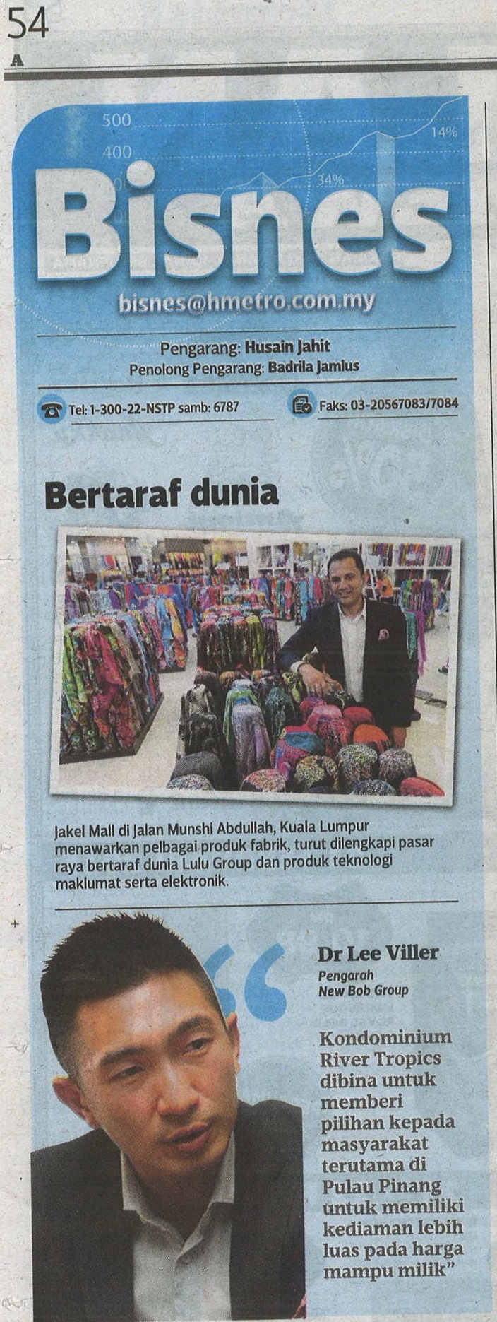Dr. Lee Ville, Pengarah New Bob Group “Kondominium River Tropics dibina untuk memberi pilihan kepada masyarakat di Pulau Pinang untuk memiliki kediaman lebih luas pada harga mampu milik”.