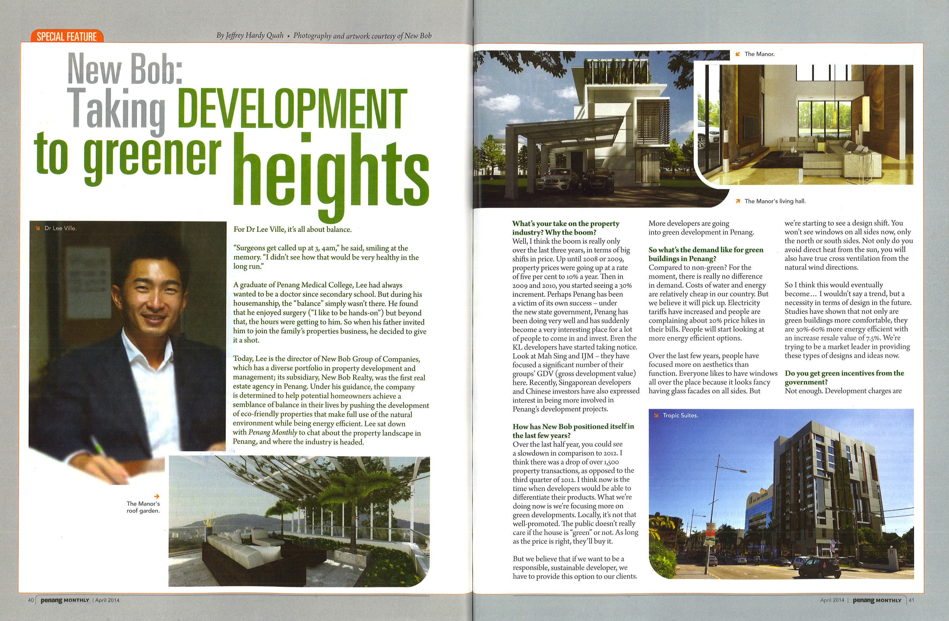 Today, Lee is the director of New Bob Group of companies, which has a diverse portfolio in property development and management; its subsidiary, New Bob Realty, was the first real estate agency in Penang. Under his guidance, the company is determined to help potential homeowners achieve a semblance of balance in their lives by pushing the development of eco-friendly properties that make full use of the natural environment while being energy efficient. Lee sat down with Penang Monthly to chat about the property landscape in Penang, and where the industry is headed.